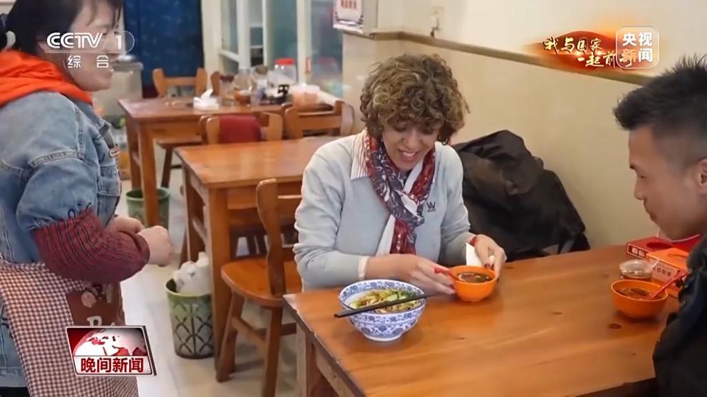 游船结束,一行人就近找了一家小面馆。虽然是第一次来中国,但蕾拉却熟练地用手机扫码支付起来。